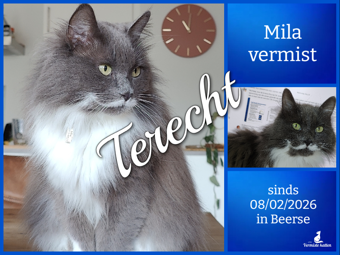 UPDATE 27/02/2026 : Mila is na 20 dagen eindelijk weer thuis! Ze was gist...