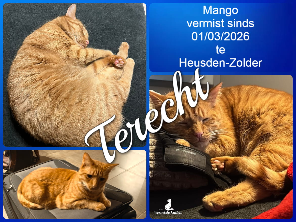 UPDATE 04/03/2026 : Onze Mango is na drie dagen teruggevonden in de kelde...
