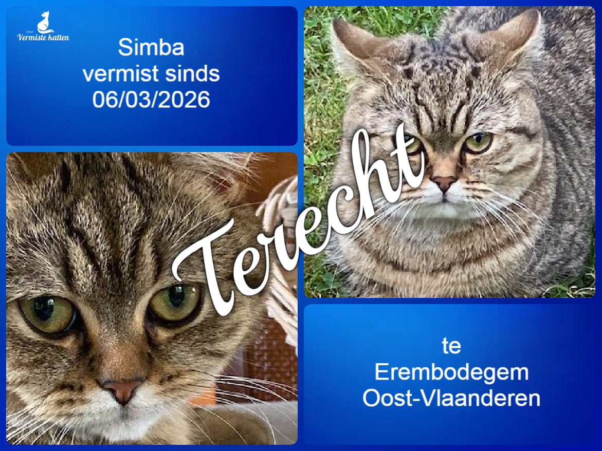 UPDATE 08/03/2026 : Simba is zojuist terug thuis gekomen. Ik ben zo gel...