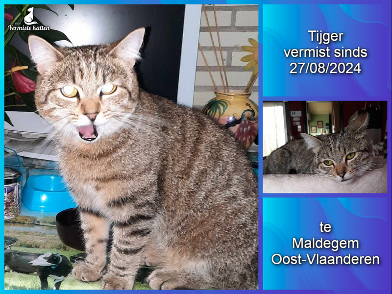 27 aug Tijger vermist sinds 27/08/2024 te Maldegem Oost-Vlaanderen