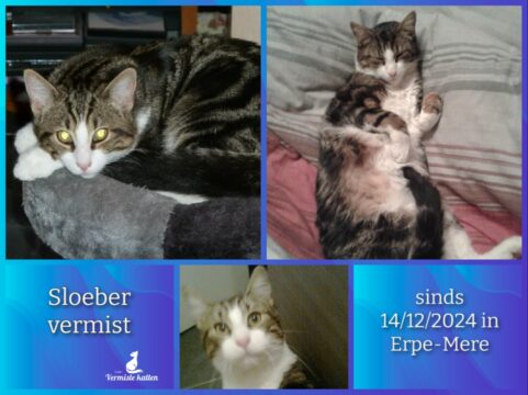 Aan de persoon die mogelijks mijn oude katje van 13 jaar heeft meegenomen zou ik willen vragen om hem mij terug te bezorgen. Hij is ziek. Het is een tijger met witte pootjes. Hij is gechipt en gecastreerd . Zijn naam is Sloeber. De nodige instanties werden op de hoogte gebracht. Ik mis mijn beestje heel erg en zou hem graag terug willen.