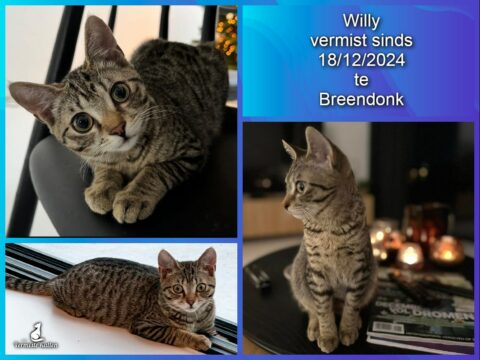 Aanvullende kenmerken: Onze kitten van +/- 6 maanden is sinds 18/12 om 11u vermist in Tashorik in Breendonk. Hij is heel nieuwsgierig en heeft van niet veel bang. Bruin/ nog niet helemaal volwassen