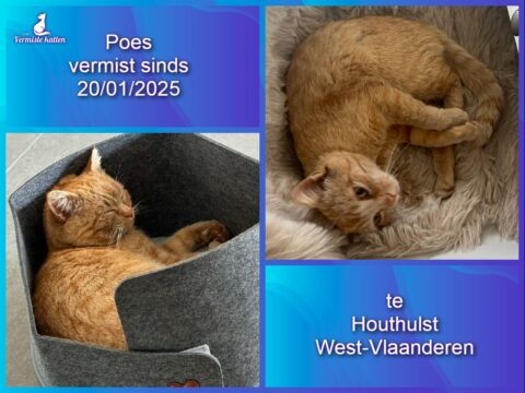 20 jan Poes vermist sinds 20/01/2025 te Houthulst West-Vlaanderen