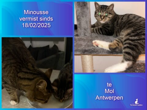 18 feb Minousse vermist sinds 18/02/2025 te Mol Antwerpen