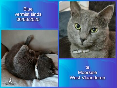 Aanvullende kenmerken: Blue is een Blauwe Rus, een zeer sociale en aanhankelijke kat. Hij draagt een zilveren halsband met een belletje om zijn nek.Het punt is dat hij nooit langer dan een paar uur van huis was. Hij vertrok op donderdag 6 maart rond 12.00 uur en sindsdien hebben we hem niet meer gevonden. Ik heb flyers uitgedeeld, ik ga elke avond naar hem op zoek, maar zonder resultaat. Ik hoop dat mijn jongen met jouw hulp weer thuiskomt!!