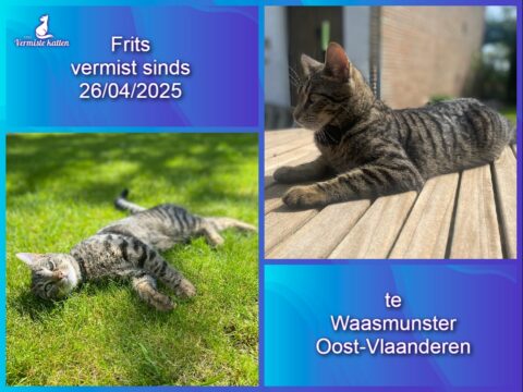 Aanvullende kenmerken: Frits is een lieve, slanke kater, hij heeft geen bandje aan.
