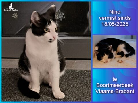 Aanvullende kenmerken: Nino is zwart-wit, witte pootjes, 2 zwarte vlekken op de snoet.