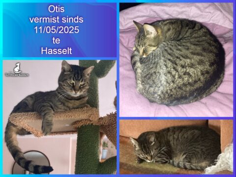 Aanvullende kenmerken: Otis is schuw met onbekende mensen en ook heel bang van het verkeer. We zijn onlangs verhuisd naar Hasselt. Hij is grijs/beige getijgerd