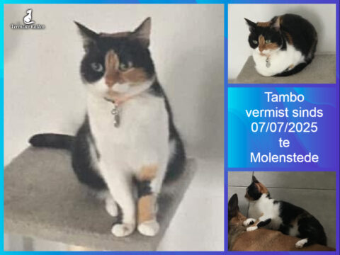 07 jul Tambo vermist sinds 07/07/2025 te Molenstede Vlaams-Brabant