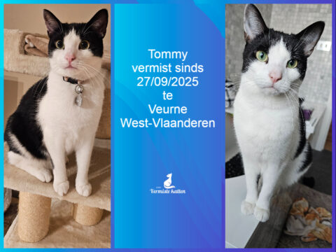 Aanvullende kenmerken: Zwart witte kat. Linker oortje heeft een witte rand. Zeer tam. Aangepaste voeding nodig. Word zeer gemist!