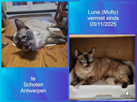 03 nov Luna (Mutty) vermist sinds 03/11/2025 te Schoten Antwerpen