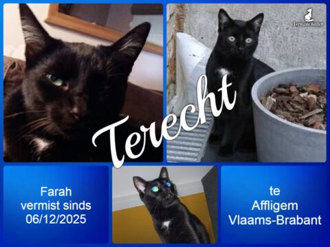11 dec Farah is terecht ! Geplaatst op 12:30h in Terug thuis!!!! door vermistekatten.be 0 Likes Deel UPDATE 11/12/2025 : Farah is vandaag thuis gekomen ! Brdankt om ons bericht te delen !