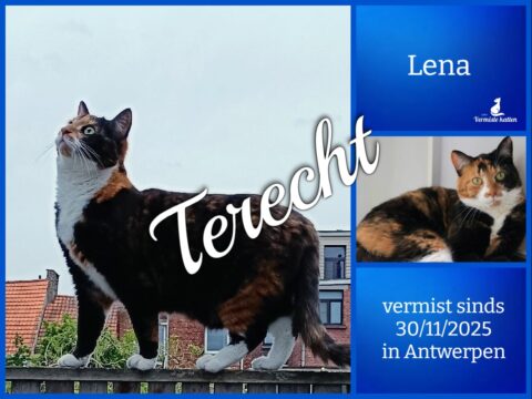 UPDATE 02/12/2025 : Lena stond deze ochtend gewoon weer voor de deur, alsof er niets gebeurd was. Wel heel veel honger.