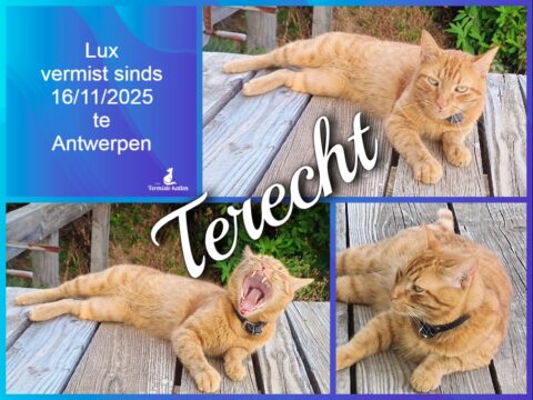 27 dec Lux is terecht ! Geplaatst op 19:49h in Terug thuis!!!! door vermistekatten.be 0 Likes Deel UPDATE 27/12/2025 : Ik laat weten dat onze kat terecht is. Veel dank voor jullie medewerking.