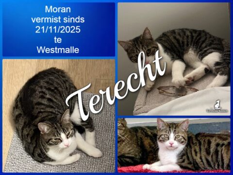 10 dec Moran is terecht ! Geplaatst op 23:34h in Terug thuis!!!! door vermistekatten.be 0 Likes Deel UPDATE 10/12/2025 : Moran is terug thuis ! Bedankt voor de hulp.
