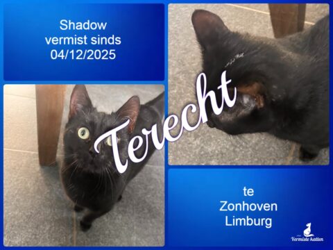 05 dec Shadow is terecht ! Geplaatst op 23:00h in Terug thuis!!!! door vermistekatten.be 0 Likes Deel UPDATE 05/12/2025 : Shadow is terug thuis aangekomen. Heel erg bedankt voor alle hulp!