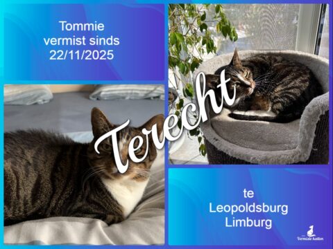 07 dec Tommie is terecht ! Geplaatst op 14:19h in Terug thuis!!!! door vermistekatten.be 0 Likes Deel UPDATE 07/12/2025 : Onze poes Tommie is weer thuis!! Hij stond na 2 weken ineens in onze living (deur was open) met veel honger en bang ❤️ Danku voor jullie hulp en inzetting!