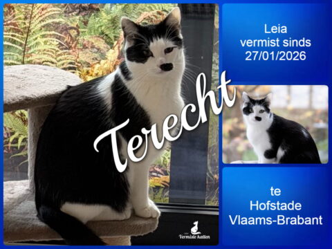 28 jan Leia is terecht ! Geplaatst op 18:30h in Terug thuis!!!! door vermistekatten.be 0 Likes Deel UPDATE 28/01/2026 : Ze is vanzelf teruggekomen.