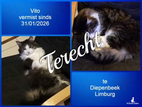 31 jan Vito is terecht ! Geplaatst op 23:24h in Terug thuis!!!! door vermistekatten.be 0 Likes Deel UPDATE 31/01/2026 : Vito is terecht !