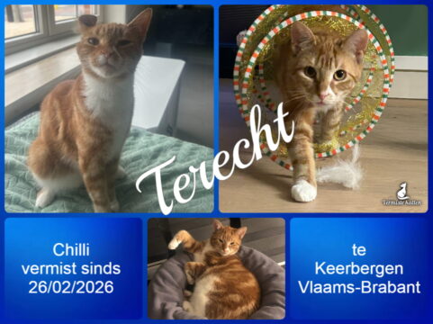 28 feb Chilli is terecht! Geplaatst op 16:31h in Terug thuis!!!! door vermistekatten.be 0 Likes Deel UPDATE 28/02/2026: Lieve buren hebben hem gevonden in hun loods! Bedankt!!!