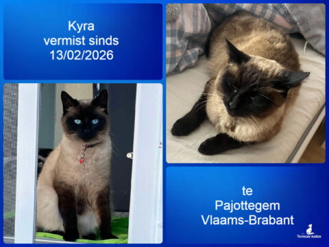 Aanvullende kenmerken: Kleine snee in het oor, heel lief, klein van maat. Antwoordt op de naam Kyra. Haar familie mist haar ontzettend veel dus alle informatie is zeker welkom. Bedankt.