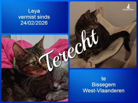 25 feb Leya is terecht ! Geplaatst op 21:23h in Terug thuis!!!! door vermistekatten.be 0 Likes Deel UPDATE 25/02/2026 : We kwamen net thuis van nogmaals onze ronde te doen om ze te zoeken en we hoorden ze ! Dus bij deze wil ik jullie enorm hard bedanken voor al jullie tijd en moeite die jullie deden maar ze is terecht ! 😍