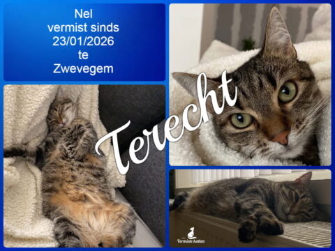 UPDATE 02/02/2026 : Vandaag kreeg ik een tip dat ze bij de technische dienst zat, ze konden haar niet vangen en gelukkig kwam ze direct afgelopen. Ze zat daar al een week, 5 minuten van haar huis. Maar ze kreeg daar dagelijks eten. Nu is ze veilig thuis terug ! Bedankt voor het delen van ons bericht !