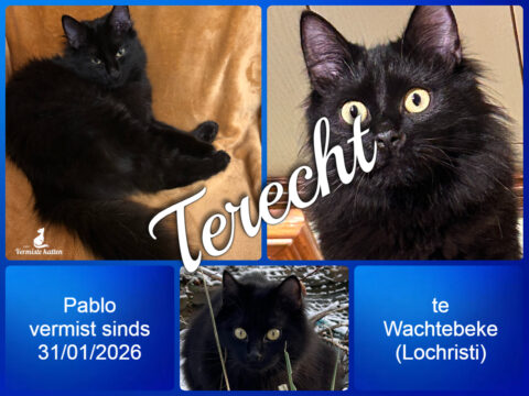 08 feb Pablo is terecht ! Geplaatst op 14:54h in Terug thuis!!!! door vermistekatten.be 0 Likes Deel UPDATE 08/02/2026 : Pablo is terug thuis !