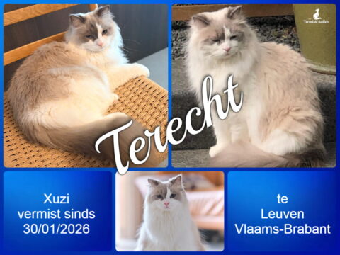 01 feb Xuzi is terecht ! Geplaatst op 23:05h in Terug thuis!!!! door vermistekatten.be 0 Likes Deel UPDATE 01/02/2026 : We hebben onze poes zonet na 2,5 dagen na een zoveelste zoekactie teruggevonden. Bedankt alvast voor jullie hulp!