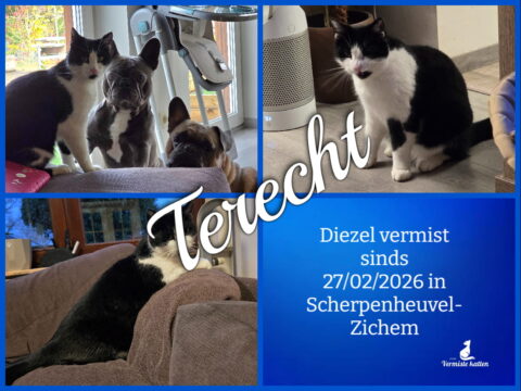 12 mrt Diezel is terecht ! Geplaatst op 23:49h in Terug thuis!!!! door redactie 0 Likes Deel UPDATE 12/03/2026 : Goed nieuws hij is terug ! We hadden kattenbak achteraan in de tuin gezet. En na 13 dagen vermist is hij terug. Bedankt iedereen om mee te kijken achter onze lieve vriend