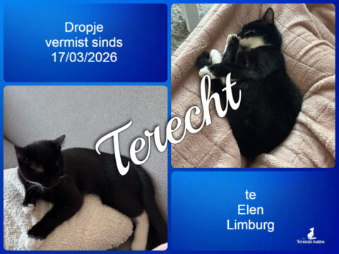 18 mrt Dropje is terecht ! Geplaatst op 20:18h in Terug thuis!!!! door vermistekatten.be 0 Likes Deel UPDATE 18/03/2026 : Hij is net al gevonden !