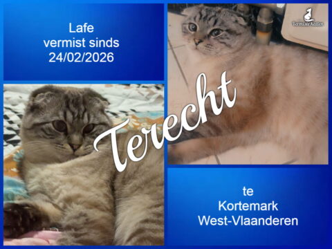01 mrt Lafe is terecht ! Geplaatst op 13:19h in Terug thuis!!!! door vermistekatten.be 0 Likes Deel UPDATE 01/03/2026 : Goed nieuws! Mijn kat is weer thuis ! ❤️ Heel erg bedankt aan iedereen die heeft geholpen met zoeken en het bericht heeft gedeeld. Jullie hulp en steun betekenen veel voor mij!