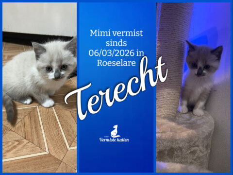 07 mrt Mimi is terecht ! Geplaatst op 11:12h in Terug thuis!!!! door redactie 0 Likes Deel UPDATE 07/03/2026 : Ons katje is terechtgekomen, dank u wel.