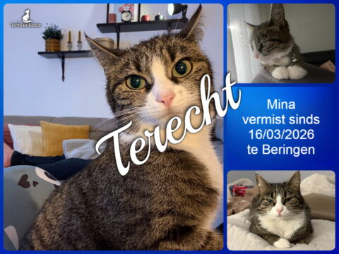 18 mrt Mina is terecht ! Geplaatst op 13:57h in Terug thuis!!!! door vermistekatten.be 0 Likes Deel UPDATE 18/03/2026 : Zij kwam lopend terug thuis aan. Toch bedankt om het bericht te delen