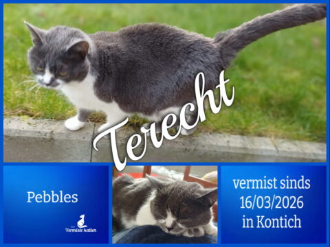 UPDATE 17/03/2026 : We hebben Pebbles terug gevonden. Bedankt voor het posten en delen van het bericht!