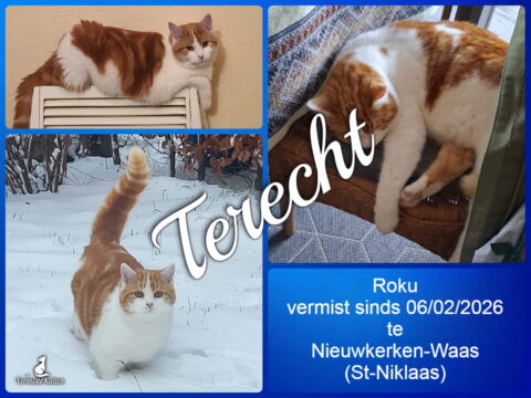 23 mrt Roku is terecht ! Geplaatst op 13:26h in Terug thuis!!!! door vermistekatten.be 0 Likes Deel UPDATE 23/03/2026 : Roku stond na 6 weken terug op onze oprit. Hij had veel teken in zijn vacht, maar is verder in goede gezondheid. Bedankt voor de hulp!