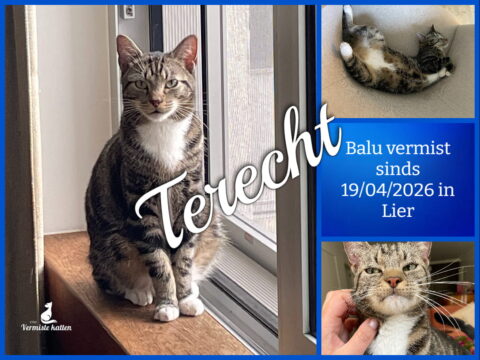 23 apr Balu is terecht ! Geplaatst op 08:40h in Terug thuis!!!! door redactie 0 Likes Deel UPDATE 23/04/2026 : Balu is vanmorgen zelf thuis gekomen! Na 4 nachten buiten.