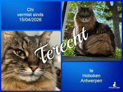15 apr Chi is terecht ! Geplaatst op 19:21h in Terug thuis!!!! door redactie 0 Likes Deel UPDATE 15/04/2026 : Chi is terug thuis gekomen !
