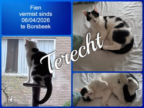 10 apr Fien is terecht ! Geplaatst op 22:52h in Terug thuis!!!! door vermistekatten.be 0 Likes Deel UPDATE 10/04/2026 : Fien is terug thuis !