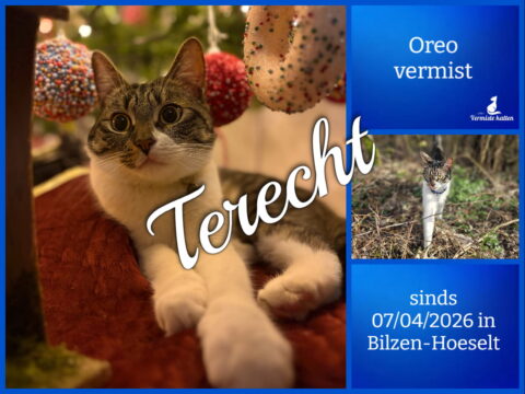 08 apr Oreo is terecht ! Geplaatst op 20:36h in Terug thuis!!!! door redactie 0 Likes Deel UPDATE 08/04/2026 : Onze kat is zojuist terug thuis aangekomen ! Bedankt voor de hulp !