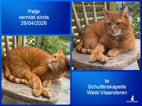 26 apr Patje vermist sinds 26/04/2026 te Schuiferskapelle West-Vlaanderen