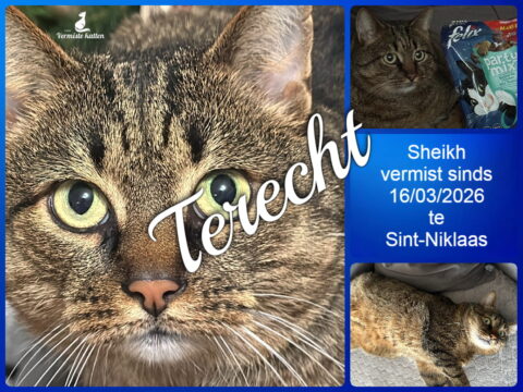 UPDATE 04/04/2026 : Na 19 dagen is mijn lieve Sheikh eindelijk weer thuis. Hij is niet gewond, maar wel erg vermagerd. Waarschijnlijk is hij ergens opgesloten geweest
