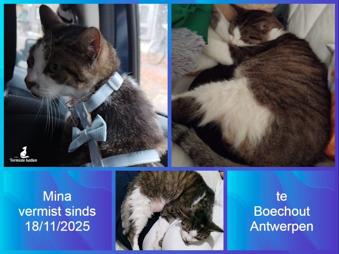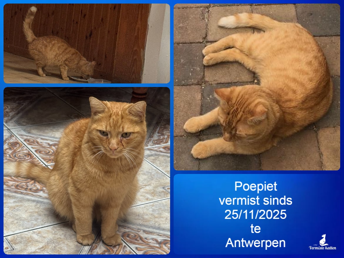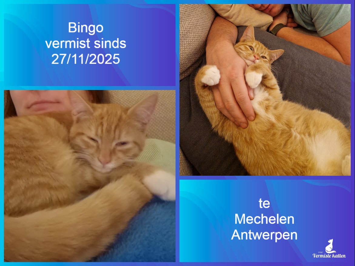 Naam kat: Kleineke Datum vermist: 11/12/2025 Plaats verdwijning: Hovestraat - Boniverlei Woonplaats: Edegem Provincie: Antwerpen Geslacht: Kater Gesteriliseerd/Gecastreerd: Nee Geboortedatum Kat: 28/08/2024 Chip: Nee Aanvullende kenmerken: Kleine rosse tijgerkat Mail: vermistekatten.be@gmail.com...