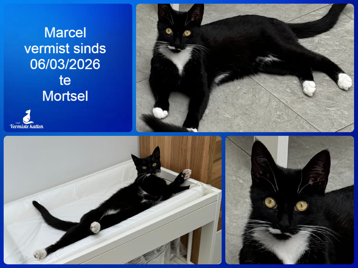 Naam kat: Marcel Datum vermist: 06/03/2026 Plaats verdwijning: Fortstraat Woonplaats: Mortsel Provincie: Antwerpen Geslacht: Kattin Gesteriliseerd/Gecastreerd: Ja Geboortedatum Kat: 2 jaar Chip: Ja Aanvullende kenmerken: Zwart witte kat Mail: vermistekatten.be@gmail.com...