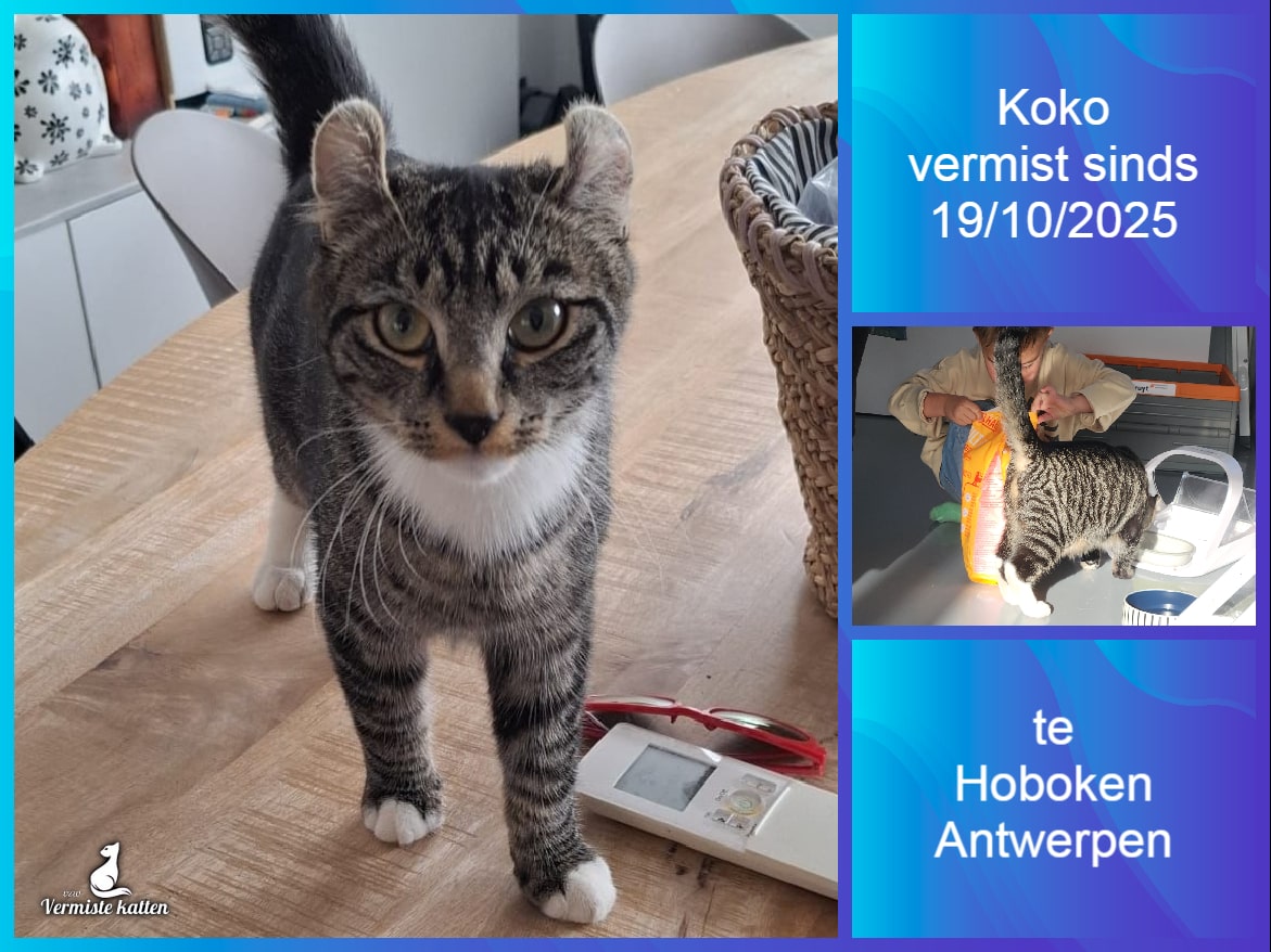 Naam kat: Marcel Datum vermist: 20/10/2025 Plaats verdwijning: Monnikenhofstraat Woonplaats: 2040 Berendrecht Provincie: Antwerpen Geslacht: Kater Gesteriliseerd/Gecastreerd: Ja Geboortedatum Kat: 1/2/2024 Chip: Ja Aanvullende kenmerken: Bruin met zwarte vlekken en strepen Mail: vermistekatten.be@gmail.com...