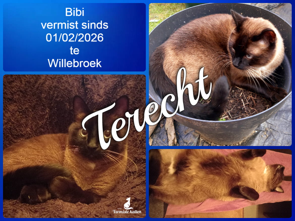 UPDATE 02/02/2026 : Na afgelopen nacht nog te hebben gezocht en deze ochtend om 6u opnieuw heb ik Bibi gevonden in een tuin van de buren....