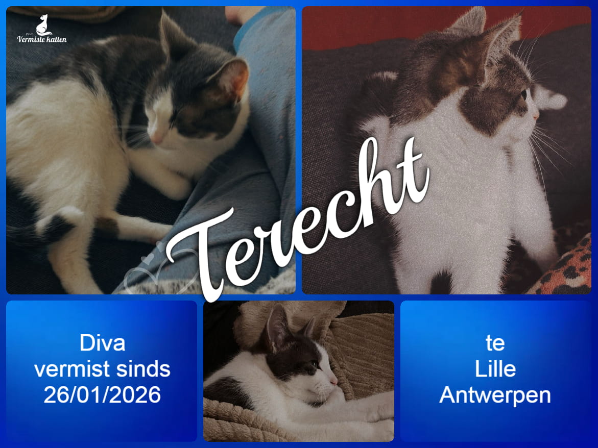 UPDATE 27/01/2026 : Diva is weer thuis ! Buren wat verder hadden haar vanmorgend onderkoeld gevonden, hebben haar goed verzorgd & door mijn vele oproepen hebben we...