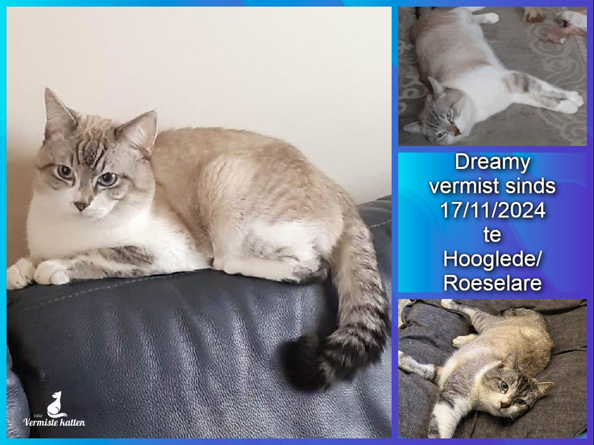 Naam kat: Mika Datum vermist: 13/04 Plaats verdwijning: Cornelis Dyckstratelaan Woonplaats: Deurne Provincie: Antwerpen Geslacht: Kater Gesteriliseerd/Gecastreerd: Ja Geboortedatum Kat: 3 jaar Chip: Ja Aanvullende kenmerken: Scottish fold. Lichtbruin. Lijkt op een leeuw. Niet...