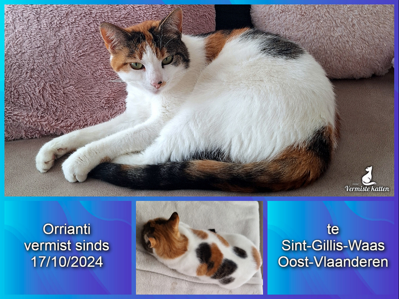 Naam kat: Fiona Datum vermist: 18/10/2024 Plaats verdwijning: MENAPIERSSTRAAT Woonplaats: KUURNE Provincie: West-Vlaanderen Geslacht: Kattin Gesteriliseerd/Gecastreerd: Ja Geboortedatum Kat: 14/04/2016 Chip: Ja Aanvullende kenmerken: Driekleur korthaar Mail: vermistekatten.be@gmail.com...
