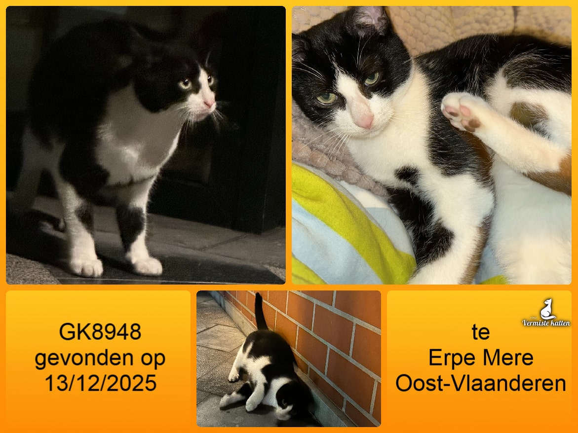 Datum gevonden: 14/12/2025 Straat: Ter varent Gemeente: Landegem Provincie: Oost-Vlaanderen Geslacht: Kater Aanvullende kenmerken: Geen chip. Gecastreerde kater. Middelbare leeftijd Mail: vermistekatten.be@gmail.com...